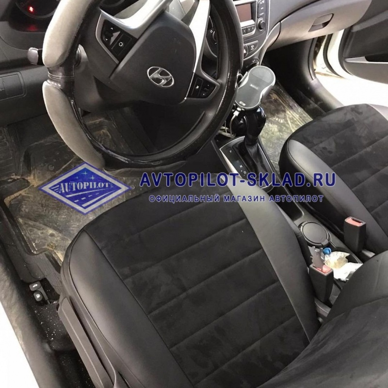 Автомобильные чехлы для Хендай Солярис 1 из Экокожи и Алькантары. Производитель фабрика «Автопилот»